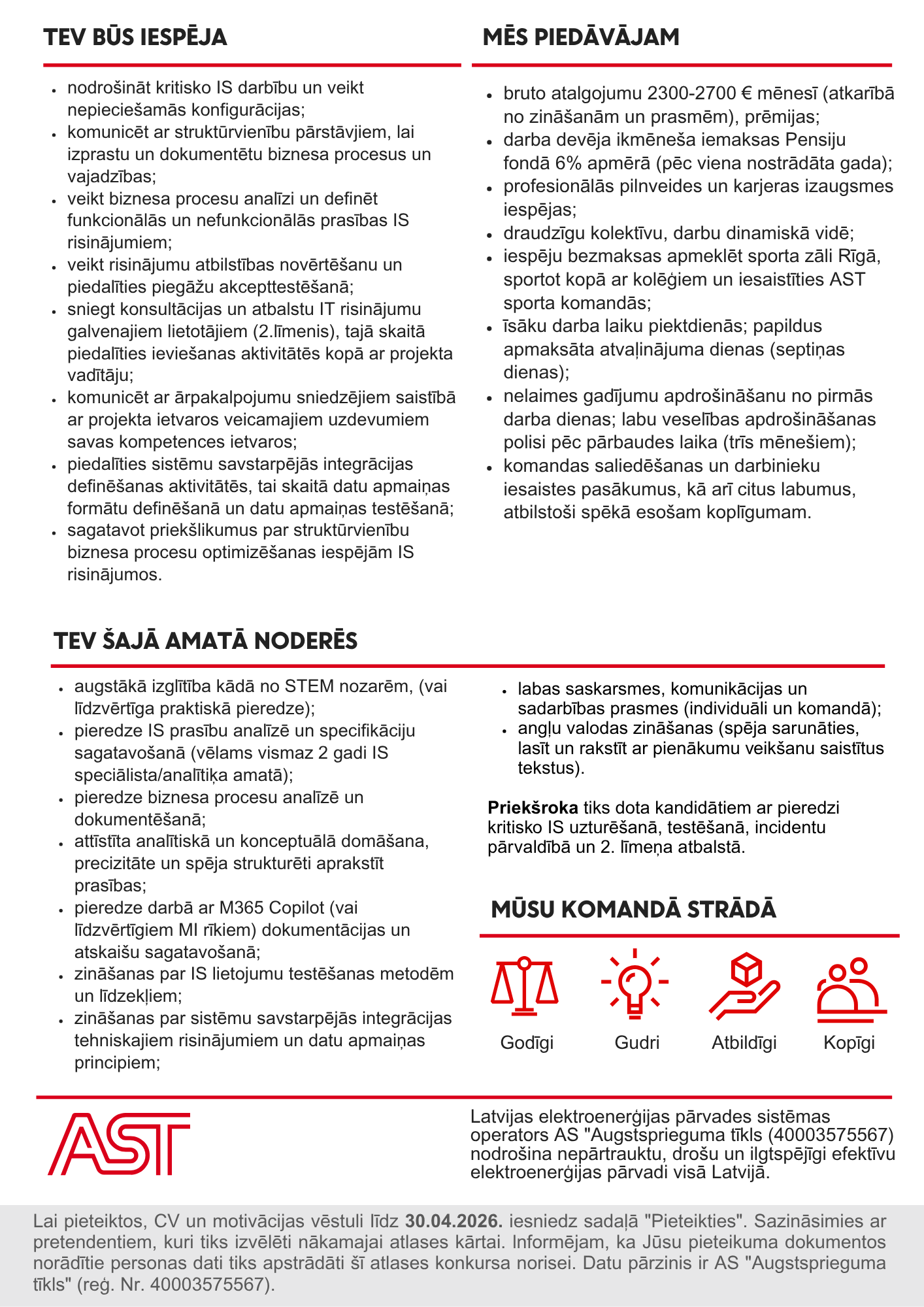 Ja Tev patīk analizēt procesus un veidot loģiskus IT risinājumus, pievienojies – definē prasības, testē un uzlabo kritiskas informācijas sistēmas!